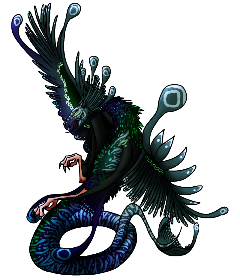 | Personality | Energetic, social, gregarious. Sitlallin would probably waste away if he were ever left completely alone. He always has something to say, whether it's to someone similarly sentient or to the multitude of birds who follow him around. Despite his serpentine appearance, others - especially his avian retinue - feel safe and comfortable around him. Sitlallin is wholly impartial when it comes to picking friends. If they're willing to stick around, he's willing to offer company and chatter aplenty! |
